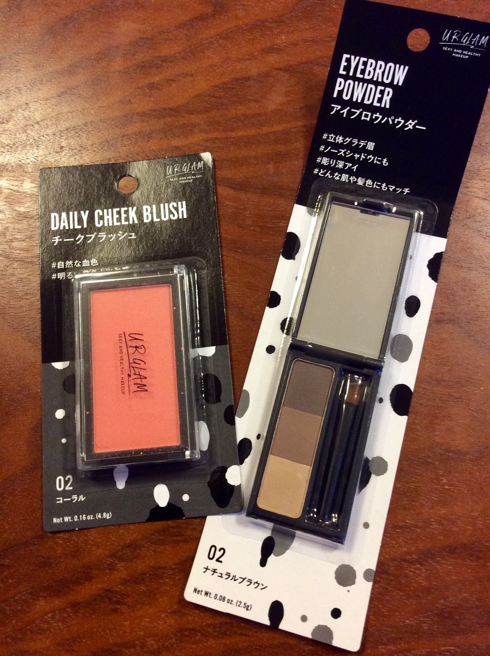 ↑オレンジ系チークとアイブロウパレットは百均にしたけど……これは失敗だったかも。チーク、すごいこなが飛び散る。アイブロウ、色がついてる気がしない。