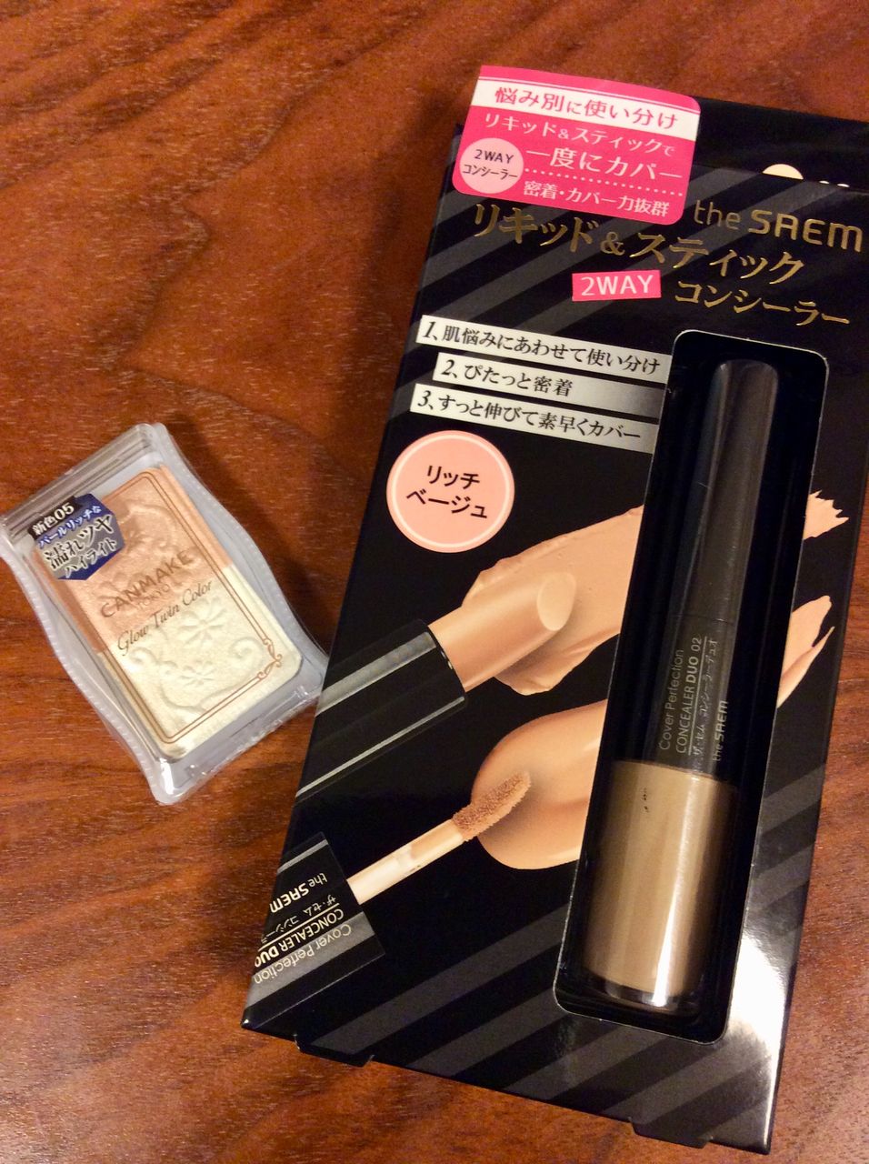 ↑すくみにはリキッドコンシーラー、しみにはスティックコンシーラーが良いとのことだったけど、セットになってるものを見つけて飛びついた!これが安いのに結構使える!キャンメイクのツインカラーのやつは、ハイライトが欲しくてこれにしてみた。